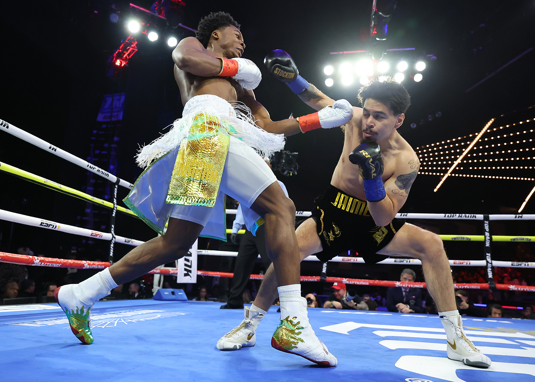 Lightweight: Abdullah Mason (17-0, 15 KOs) made the leap from prospect to contender, battering Manuel Jaimes (16-3-1, 11 KOs) en route to a fourth-round TKO. The 20-year-old phenom was too fast, snapping Jaimes’ head back with a stiff jab before unloading power shots he never saw coming. Mason dropped him four times before referee David Fields stopped it at 1:55.