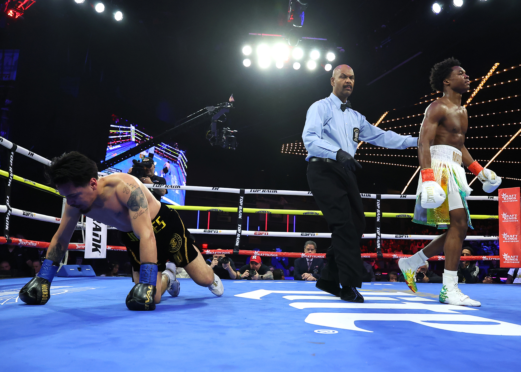Middleweight: Juan Carlos Guerra (6-1-1, 2 KOs) upset Nico Ali Walsh (11-2, 5 KOs) via six-round split decision. Scores: 58-56 Guerra 2x and 58-56 Ali Walsh.