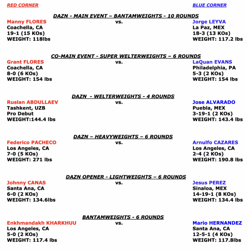 Tickets for Golden Boy Fight Night: Flores vs. Olivo are on sale and can be purchased at FantasySpringsResort.com or GoldenBoy.com.
