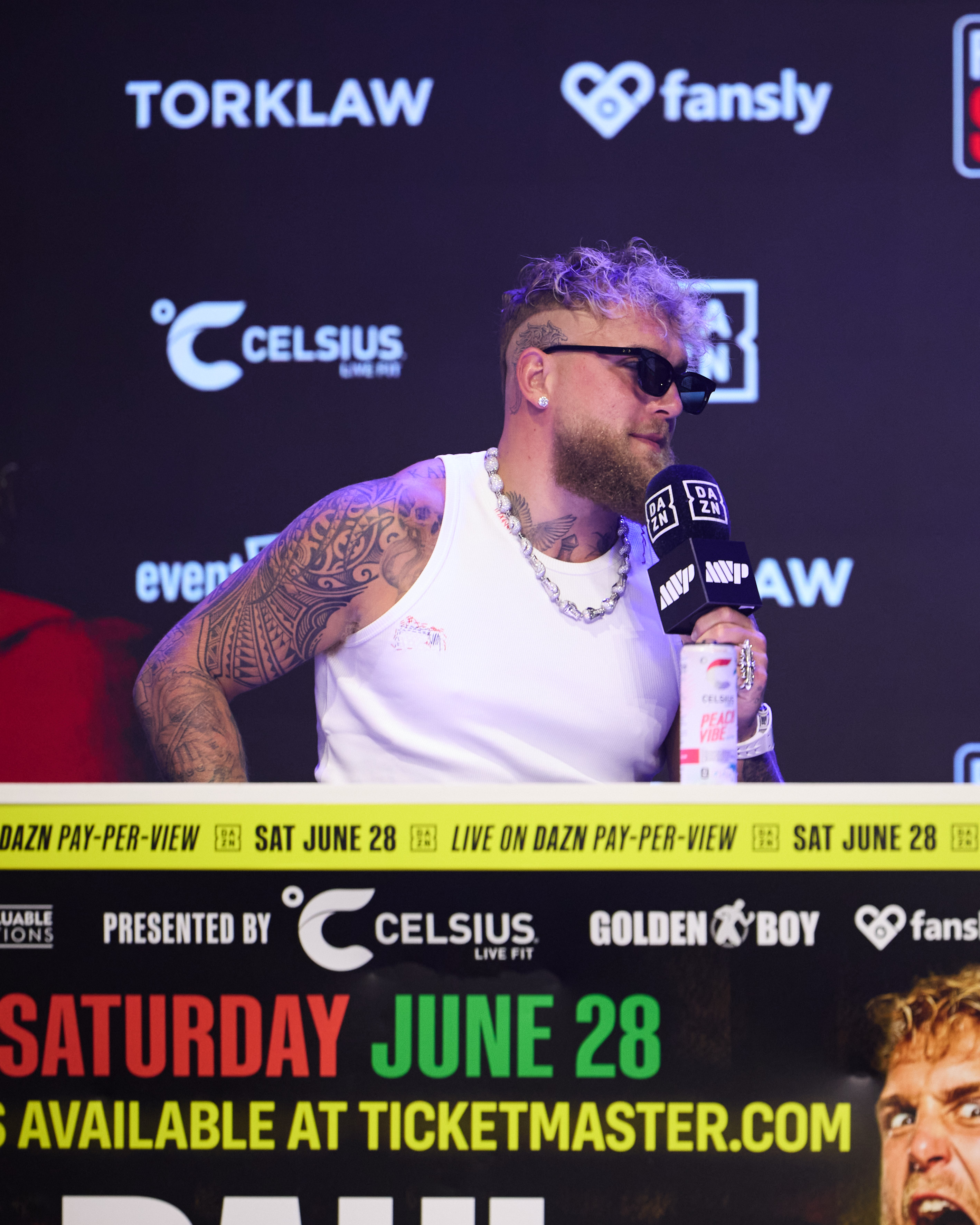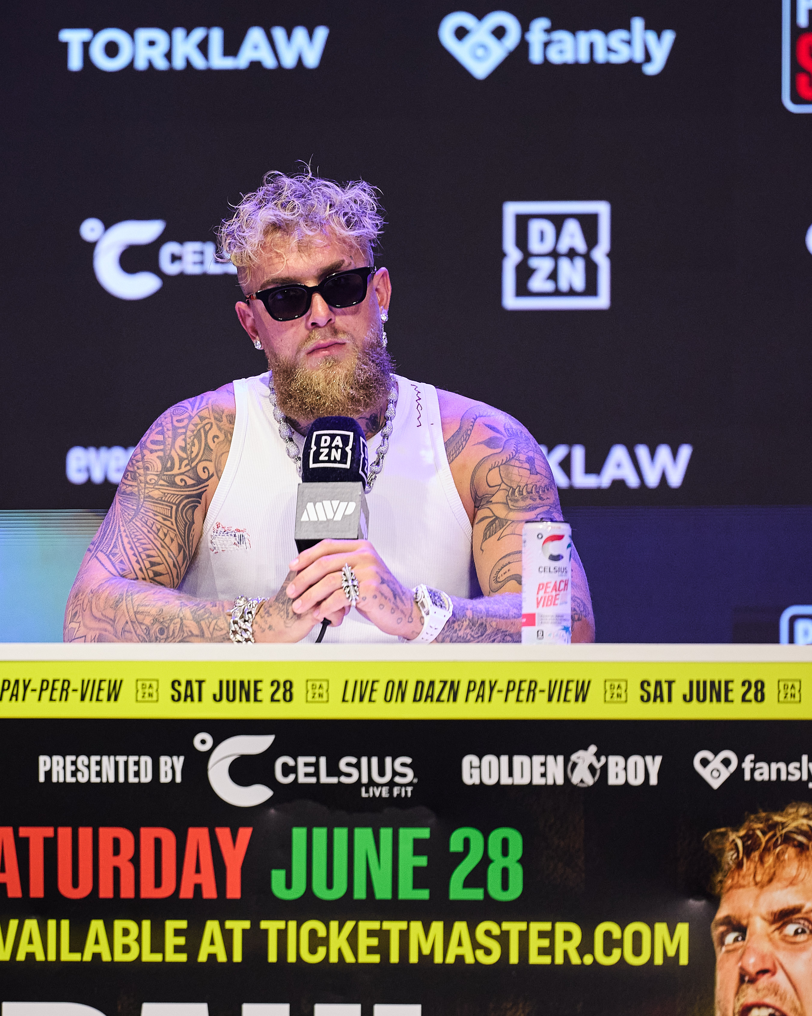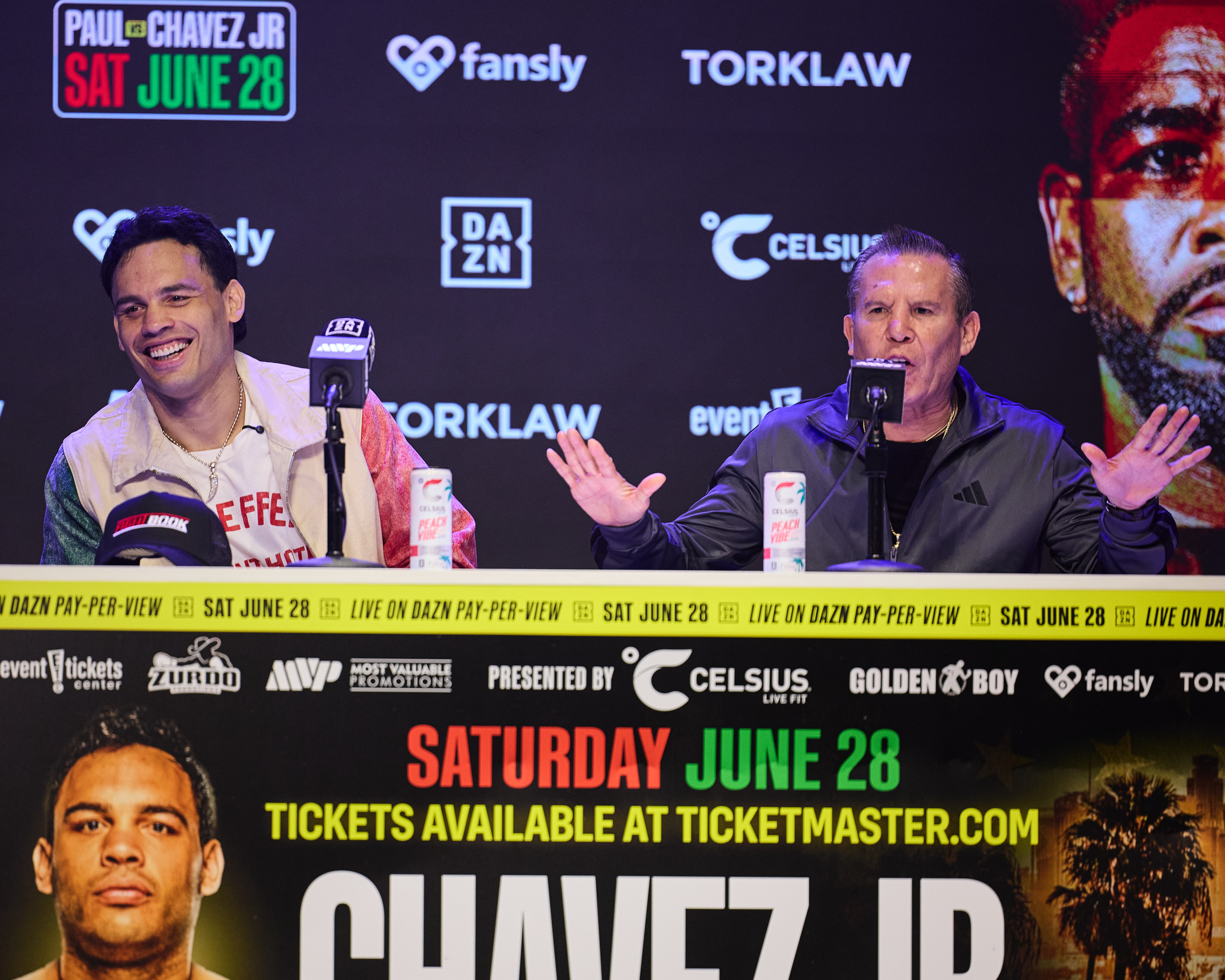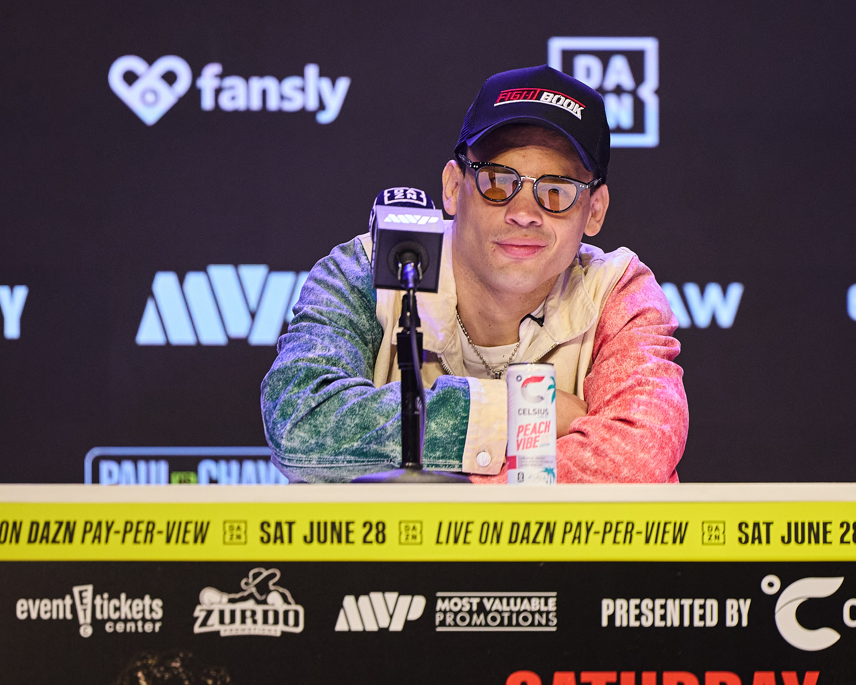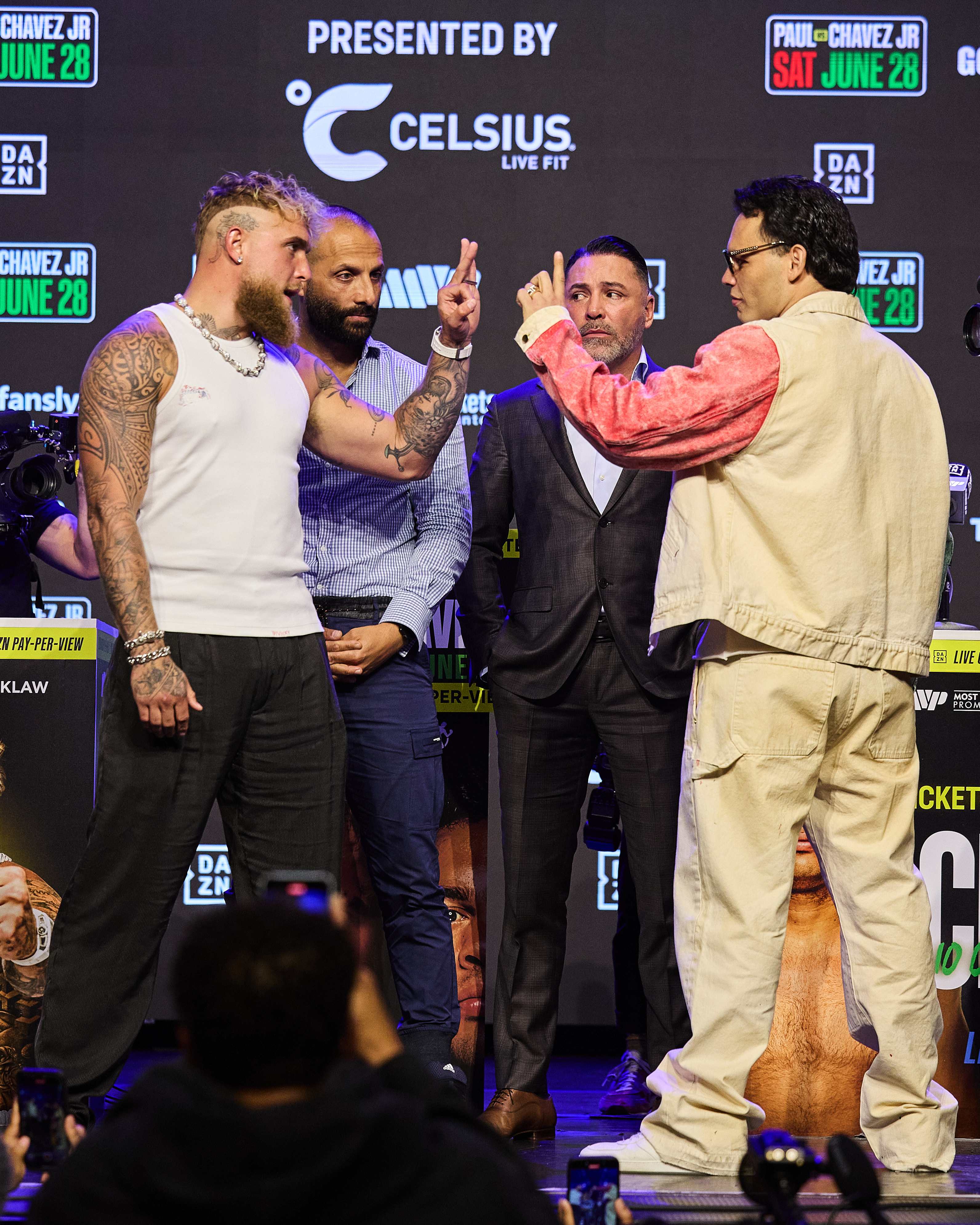 LOS ANGELES, CA – Today at the Avalon Hollywood Theater in Los Angeles, CA, The Problem Child, Jake “El Gallo de Dorado” Paul (11-1, 7 KOs) and Mexico’s former champion Julio Cesar Chavez Jr. (54-6-1, 34 KOs) met face-to-face to preview their highly anticipated Most Valuable Promotions (MVP) bout. This event will air live globally on DAZN pay-per-view on Saturday, June 28, from Honda Center in Anaheim, California, and is presented by CELSIUS Live Fit Essential Energy with Golden Boy Promotions serving as an official licensed promoter. Paul vs. Chavez is also sponsored by Event Ticket Center and Fansly. All tickets are on sale now via Ticketmaster