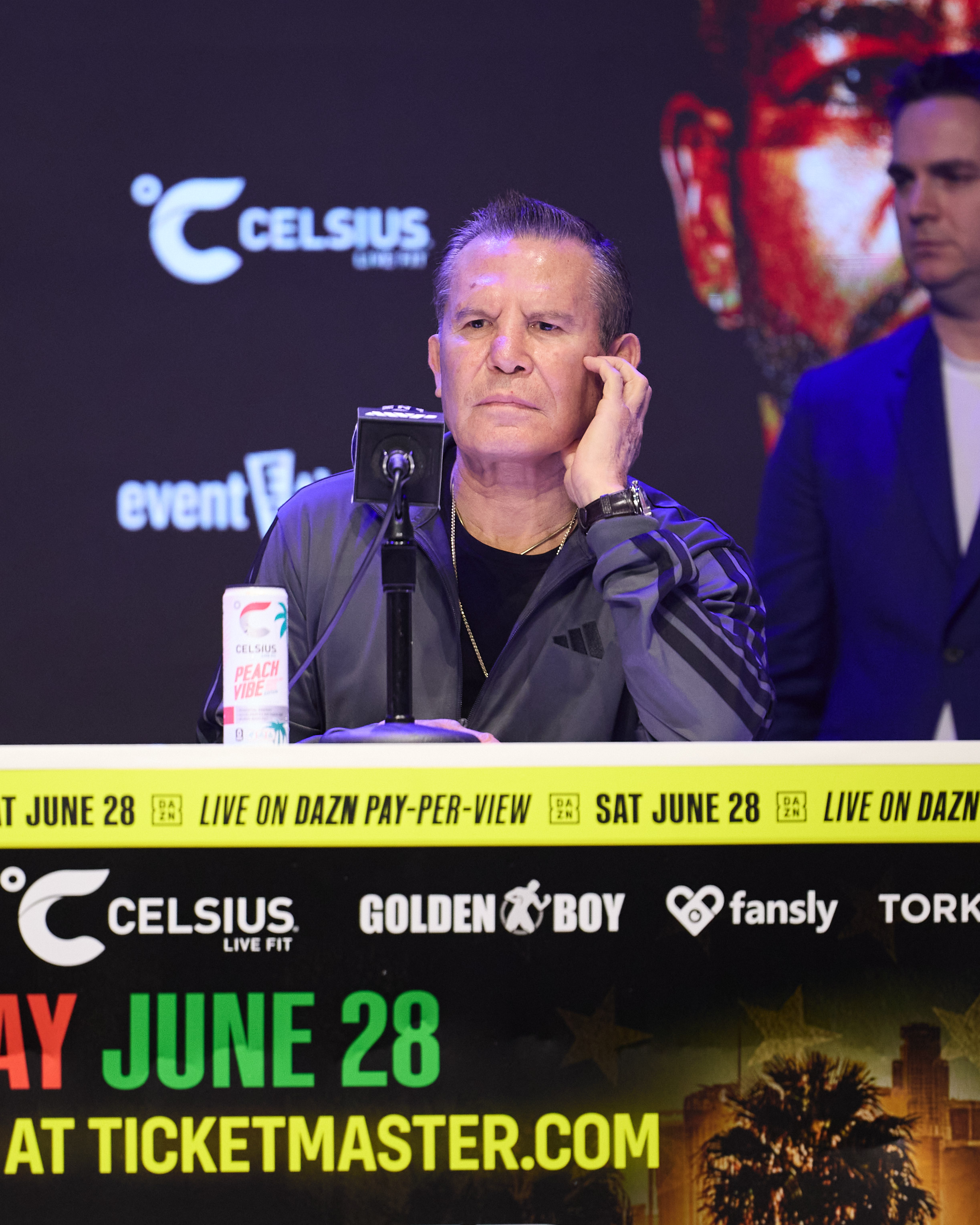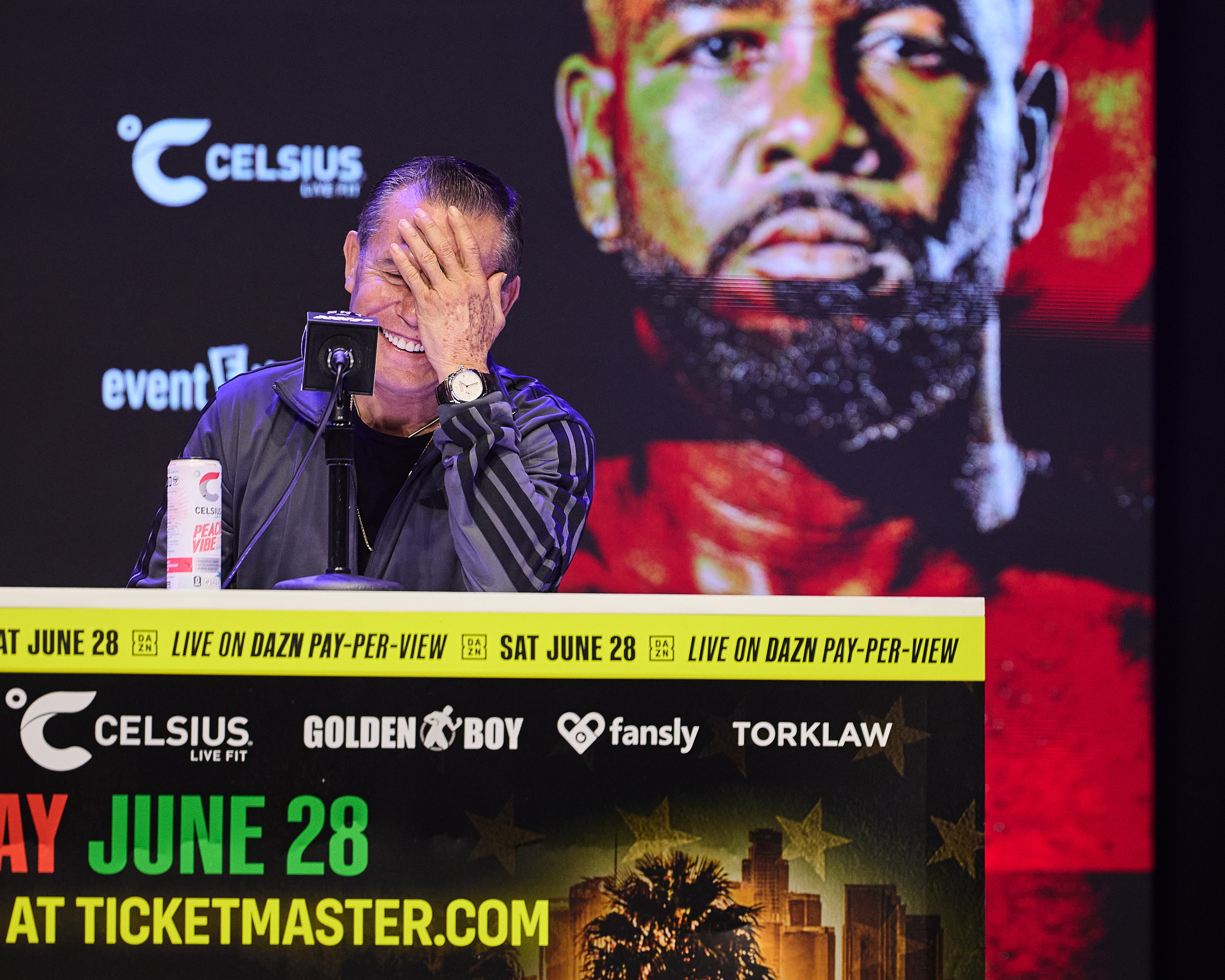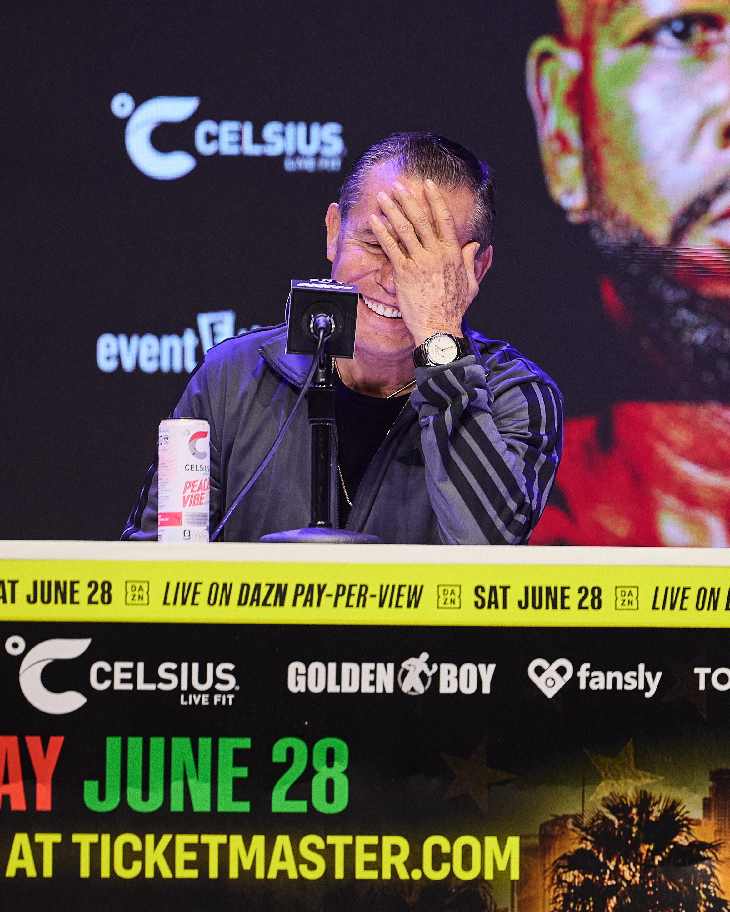 “I don’t want any excuses. When I beat this man, all the boxing media, like you always do, are going to discredit it. I’m going to expose and embarrass him. He’s the embarrassment of Mexico. Mexico doesn’t even claim him, and he’s going to get exposed on June 28. They say he’s training hard. They say this is the most focused he’s ever been. Good. As he should be. People don’t realize how good I actually am, and when he feels those first few punches, he’s going to want to quit and go back to his stool.”