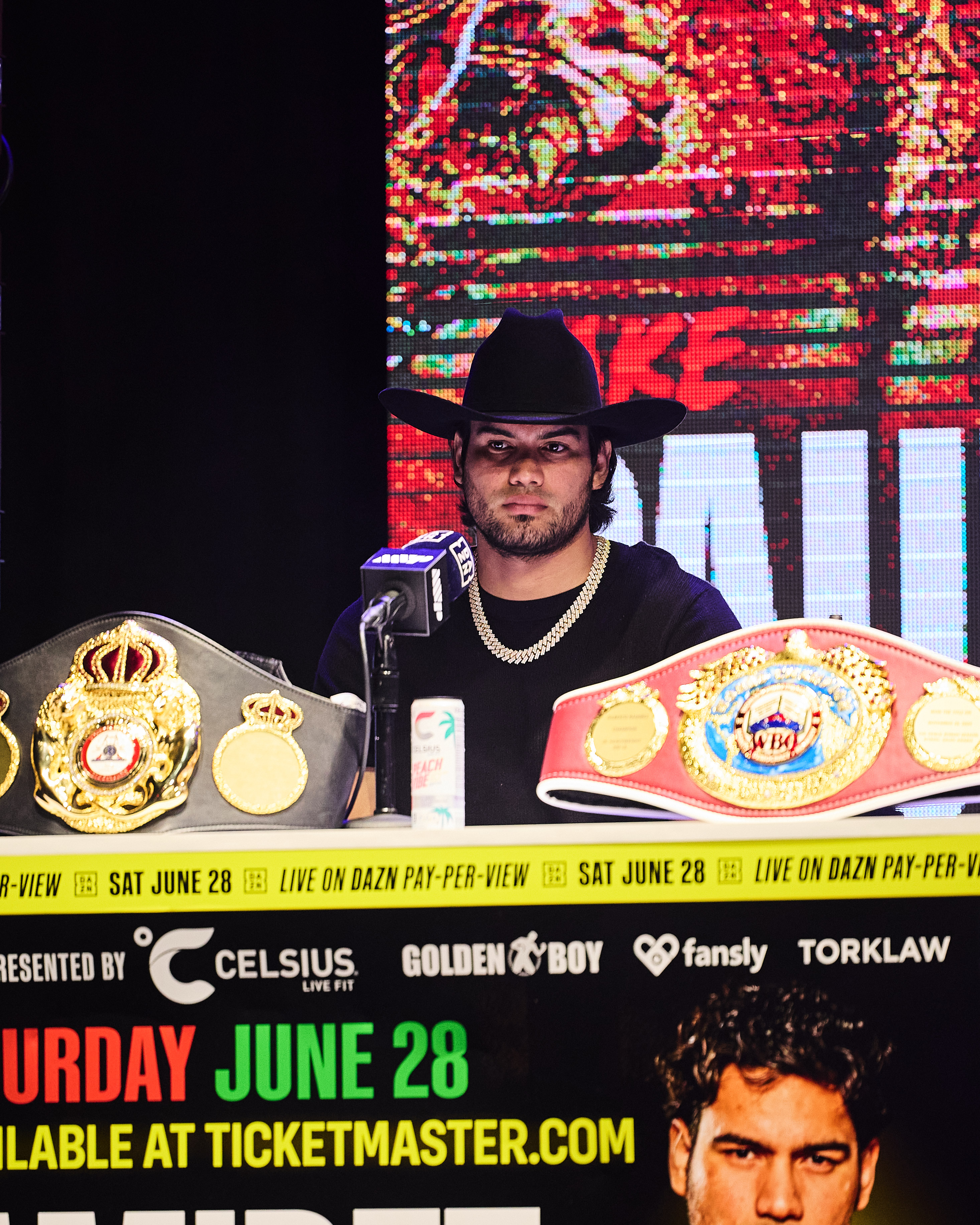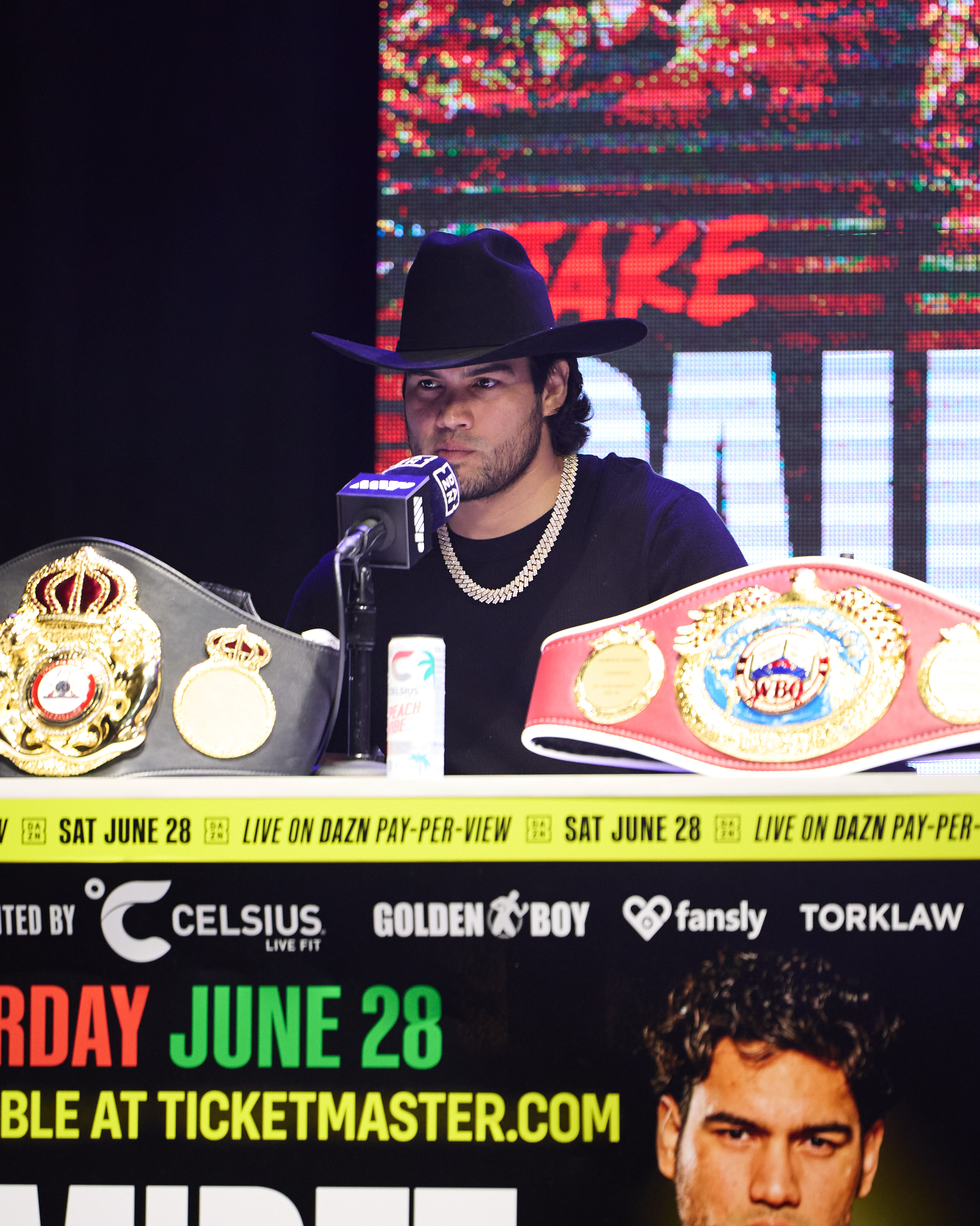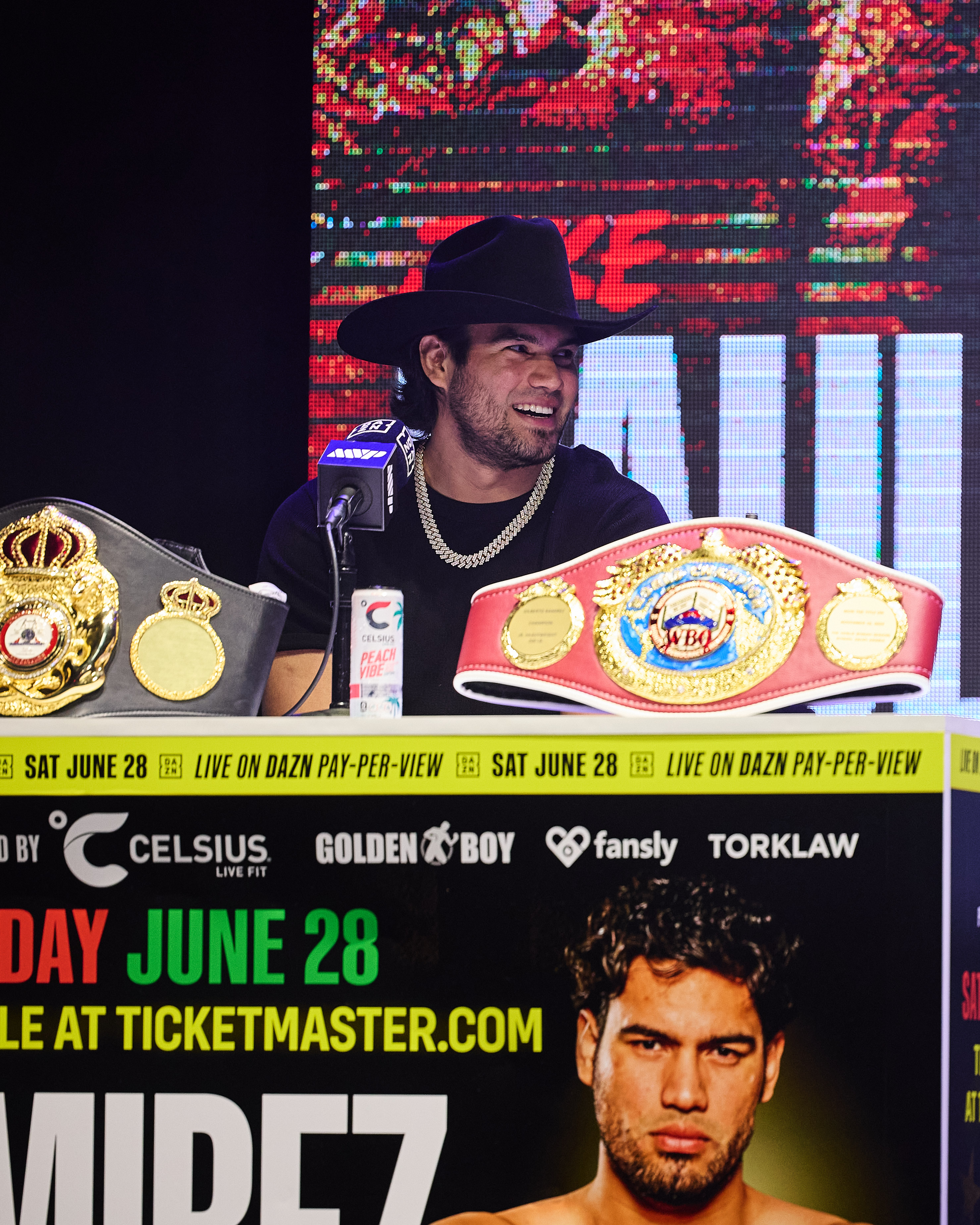 “I don’t want any excuses. When I beat this man, all the boxing media, like you always do, are going to discredit it. I’m going to expose and embarrass him. He’s the embarrassment of Mexico. Mexico doesn’t even claim him, and he’s going to get exposed on June 28. They say he’s training hard. They say this is the most focused he’s ever been. Good. As he should be. People don’t realize how good I actually am, and when he feels those first few punches, he’s going to want to quit and go back to his stool.”