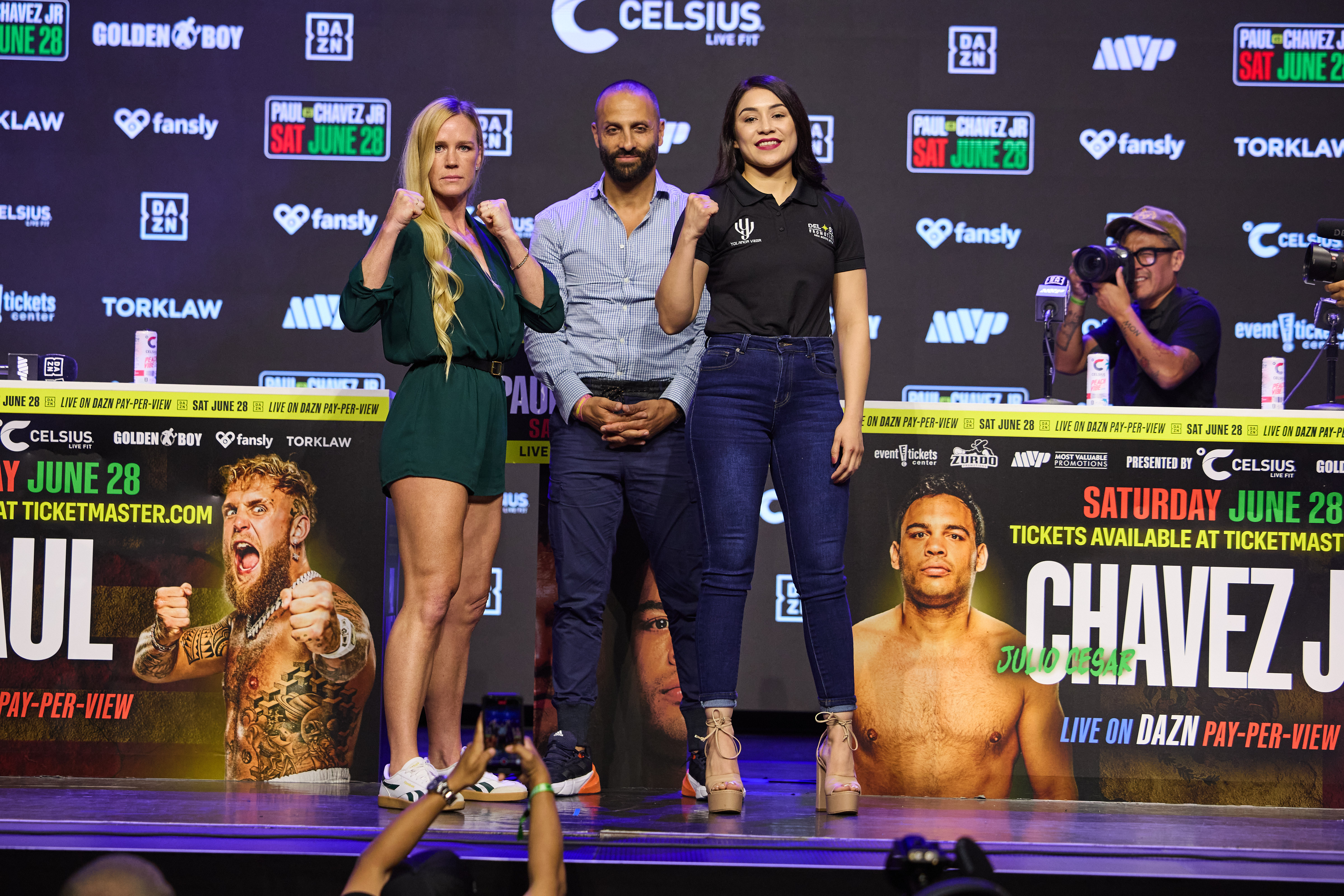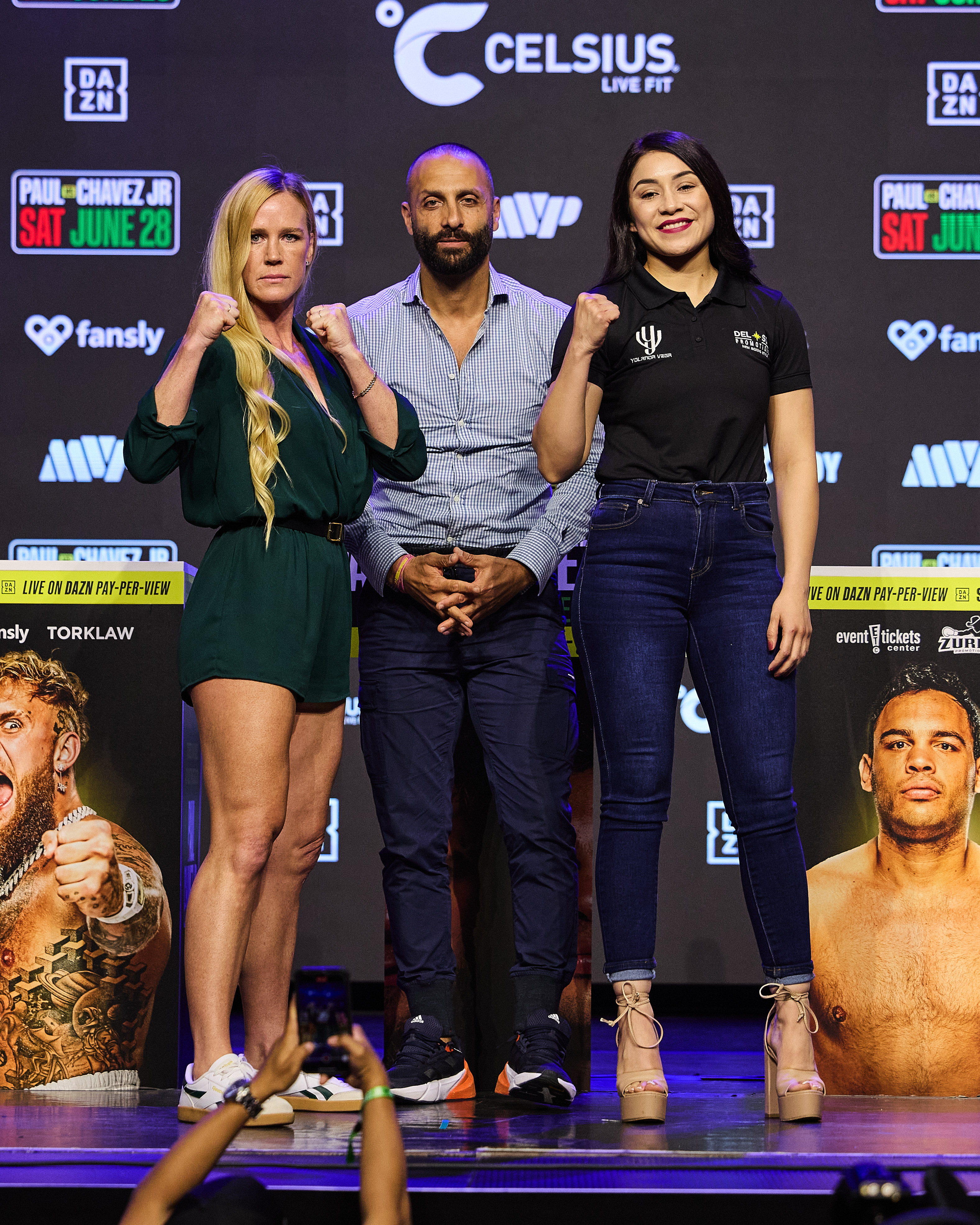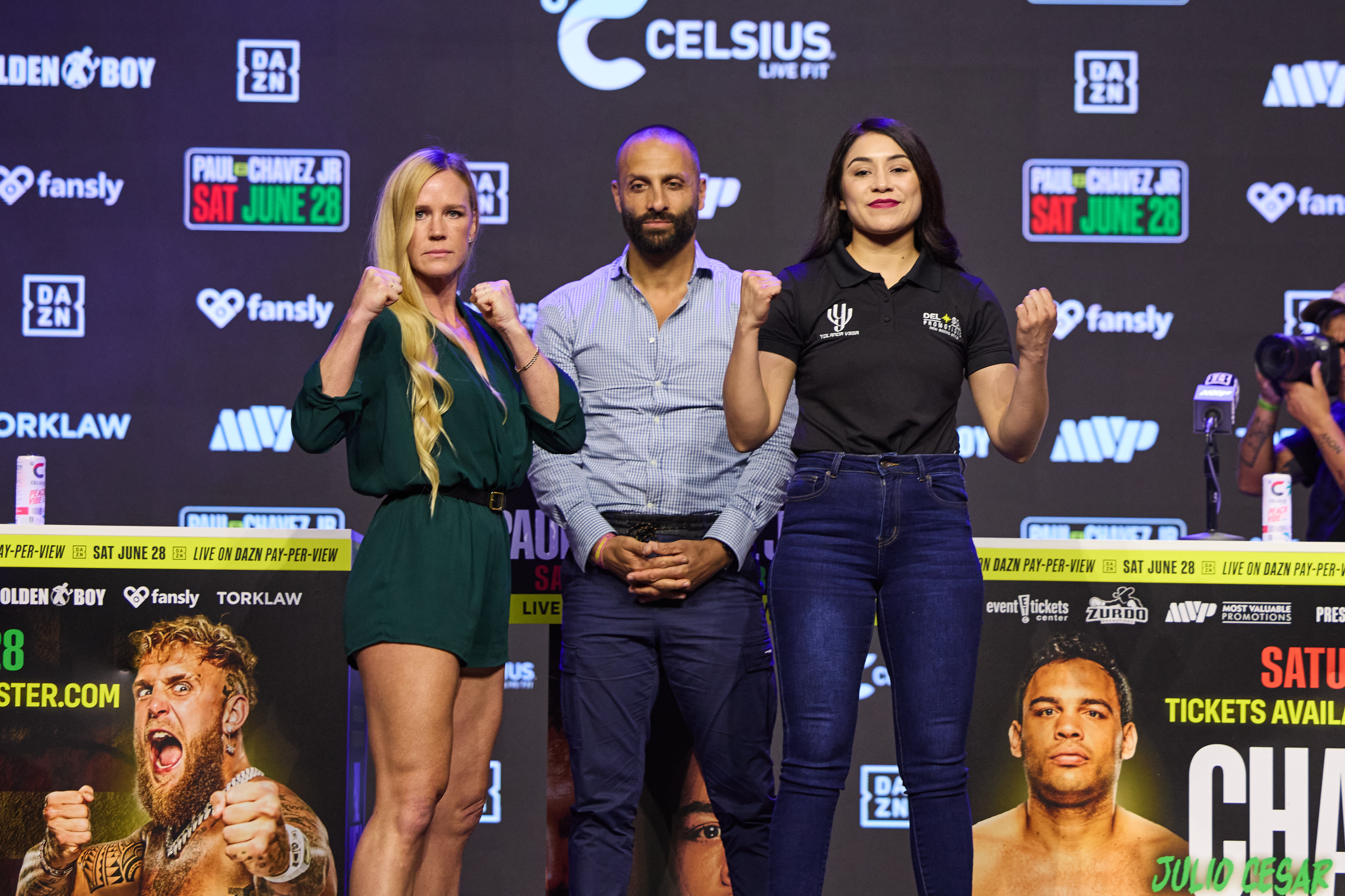 In today’s press conference, hosted by senior sports writer and analyst Chris Mannix, Paul, Chavez Jr., Dorticós, and Ramírez had plenty to say about the upcoming fight. The fighters were also joined on stage by CEO and co-founder of MVP Nakisa Bidarian, chairman and CEO of Golden Boy, Oscar De La Hoya and Mexican boxing legend Julio Cesar Chavez Sr. Other participants included former UFC bantamweight champion and boxing powerhouse, Boxrec’s #2 greatest pound-for-pound fighter of all time, Holly “The Preacher’s Daughter” Holm (33-2-3, 9 KOs), and one of Mexico’s brightest rising stars, Yolanda “Pitayita” Vega  (10-0, 1 KO) who faced off after it was announced that they are the newest signees to Most Valuable Promotions, and will also be joining the Paul-Chavez Jr. card.