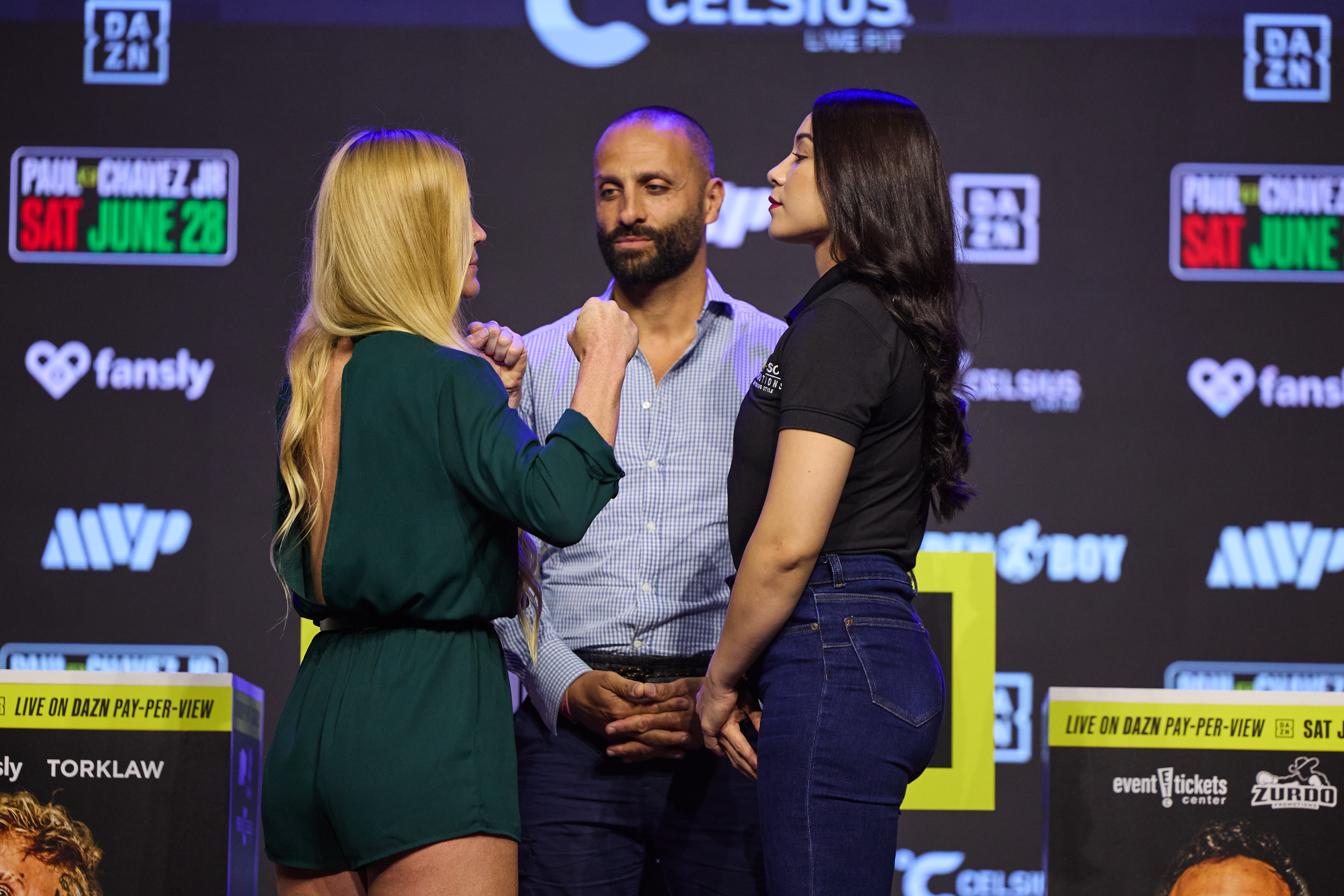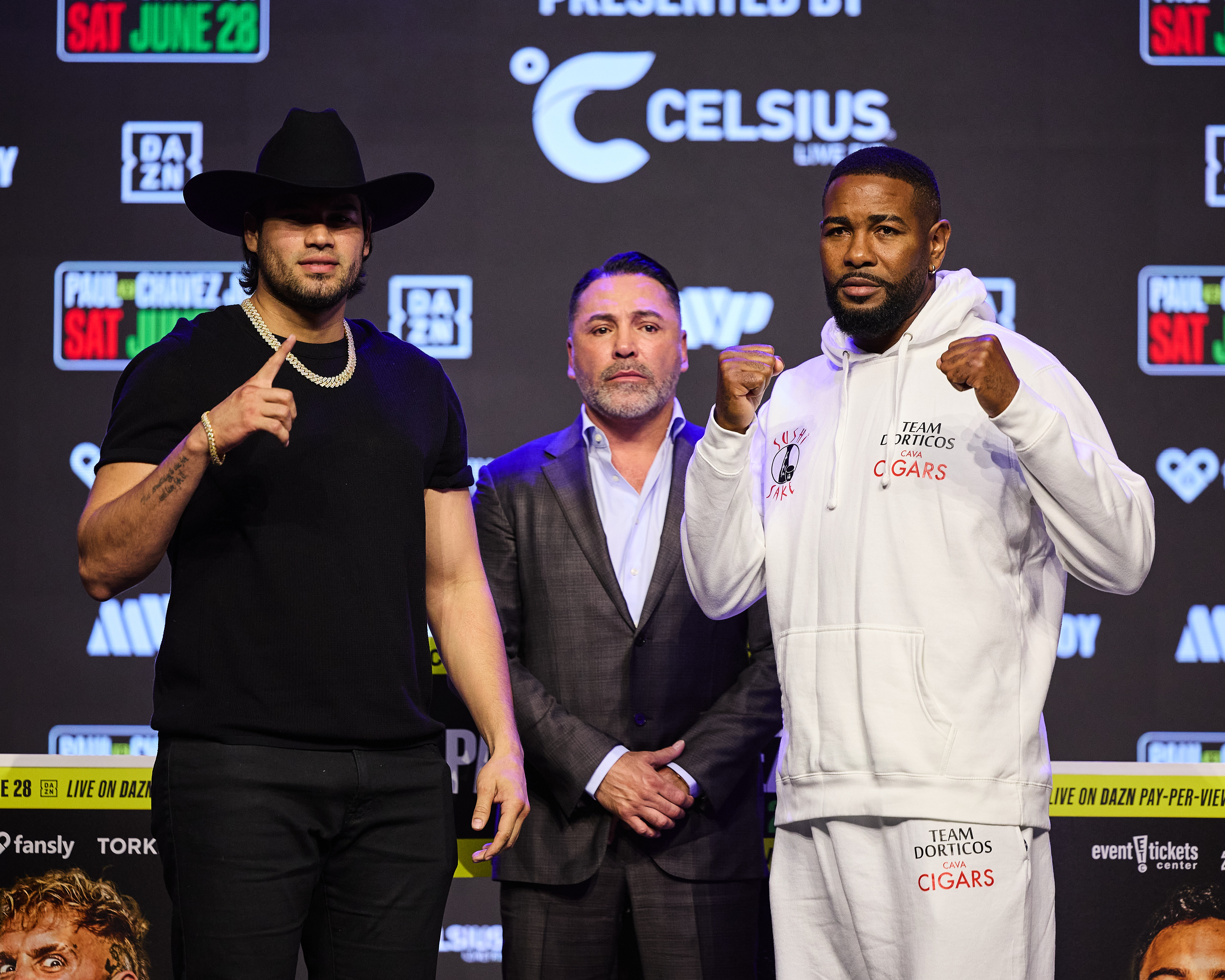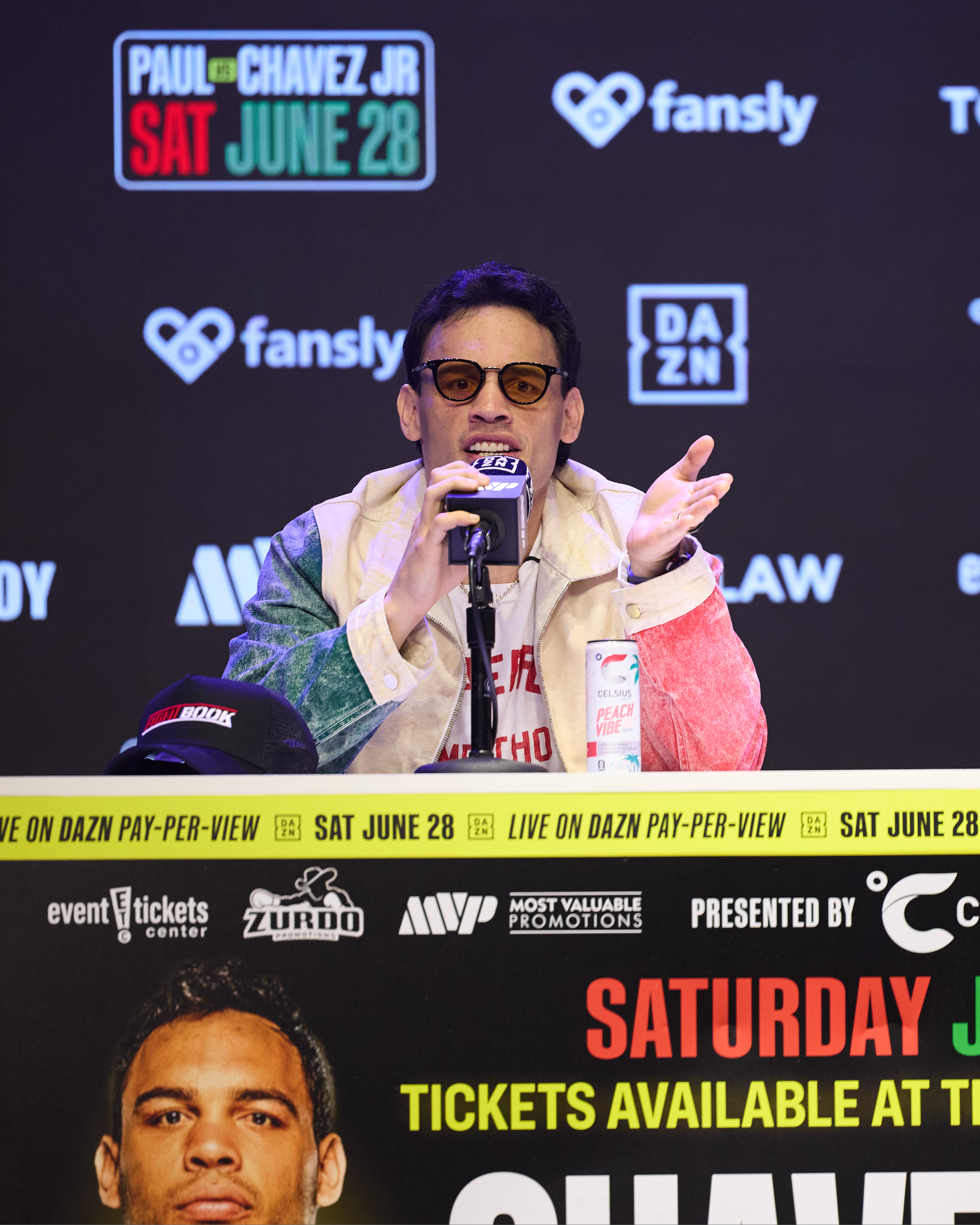 In today’s press conference, hosted by senior sports writer and analyst Chris Mannix, Paul, Chavez Jr., Dorticós, and Ramírez had plenty to say about the upcoming fight. The fighters were also joined on stage by CEO and co-founder of MVP Nakisa Bidarian, chairman and CEO of Golden Boy, Oscar De La Hoya and Mexican boxing legend Julio Cesar Chavez Sr. Other participants included former UFC bantamweight champion and boxing powerhouse, Boxrec’s #2 greatest pound-for-pound fighter of all time, Holly “The Preacher’s Daughter” Holm (33-2-3, 9 KOs), and one of Mexico’s brightest rising stars, Yolanda “Pitayita” Vega  (10-0, 1 KO) who faced off after it was announced that they are the newest signees to Most Valuable Promotions, and will also be joining the Paul-Chavez Jr. card.