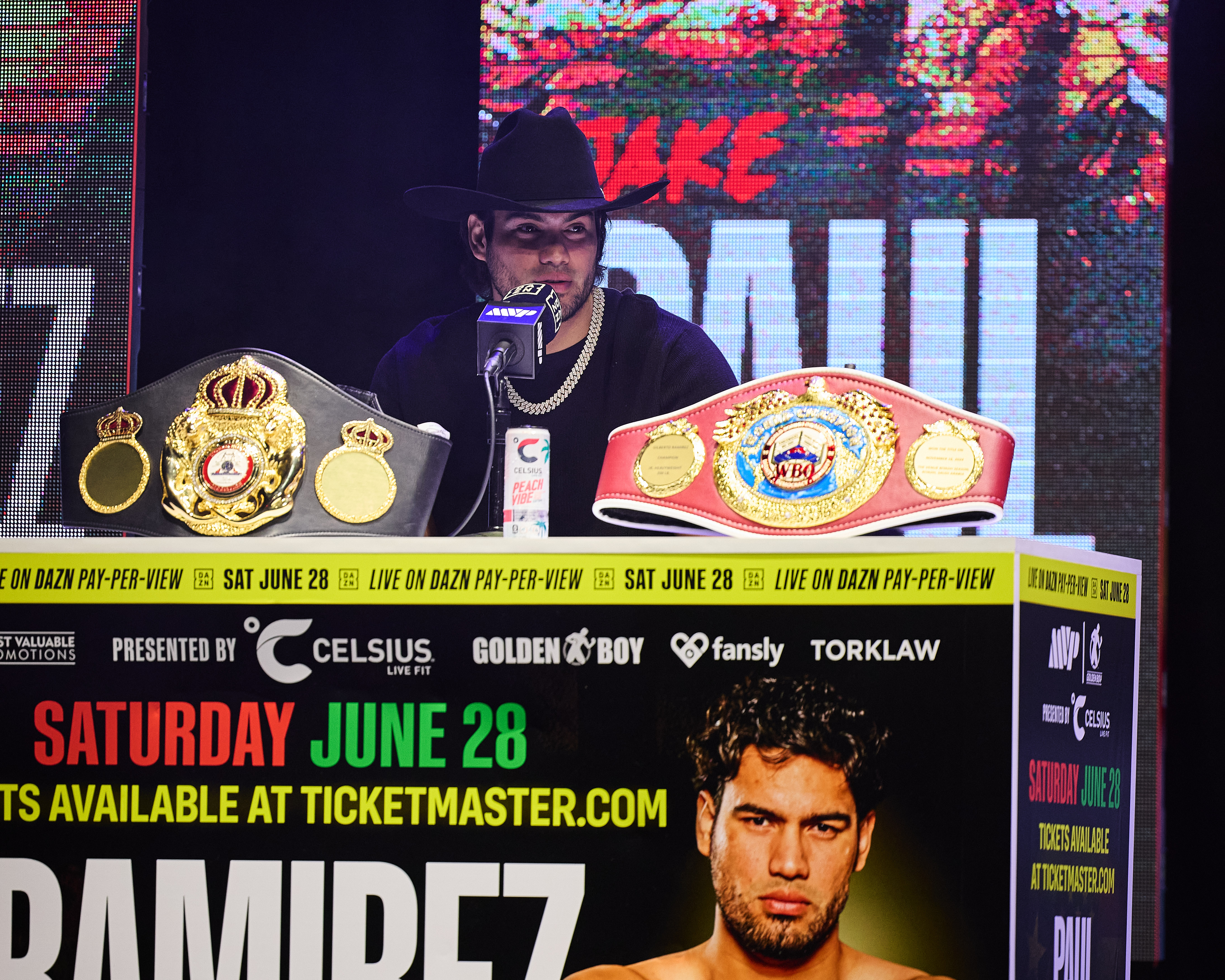 Also in attendance were Golden Boy’s WBO cruiserweight world champion and WBA cruiserweight super champion Gilberto ‘Zurdo’ Ramirez (47-1, 30 KOs), who will defend his titles for the first time in June, and former IBF and WBA cruiserweight world champion and current WBA mandatory challenger at 200lbs Yuniel Dorticos (27-2, 25 KOs). Ramirez vs. Dorticos will face off in the co-main event of Paul vs. Chavez Jr.