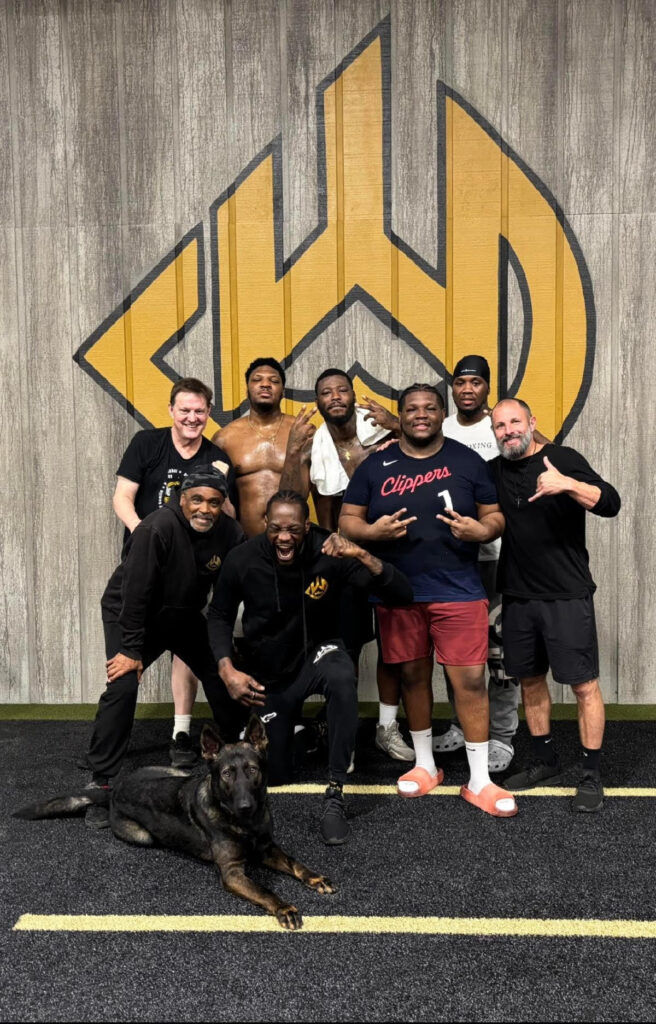 Deontay Wilder (first row second in from left) and Pryce Taylor (second row, second in from the left), chilled with coaches and sparring partners after a recent session