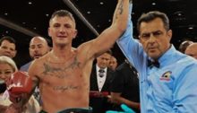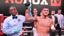 SAN LUIS POTOSI, Mexico — Rafael Espinoza bruised, bloodied, and battered Arnold Khegai. It was mostly one-way traffic, as the Mexican star defended his WBO featherweight world title with an 11th-round TKO on Saturday evening at Arena Potosi in San Luis Potosi, Mexico.