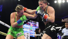Mayer defeated Canada’s Mary Spencer via one-sided unanimous (100-90 and 98-92 2x) to capture the WBA, WBC, and WBO super welterweight world titles Thursday evening at Montreal Casino in Montreal, Canada.