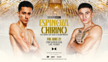 LAS VEGAS (June 12, 2024) – Unbeaten WBO featherweight world champion Rafael “El Divino” Espinoza has inked a multi-fight co-promotional agreement with Top Rank, who will work alongside Zanfer Promotions.